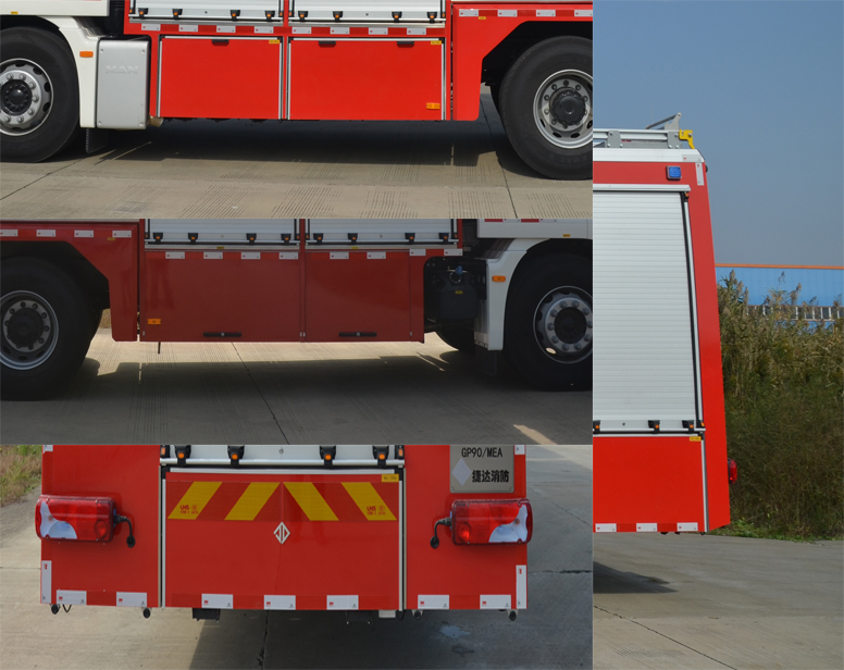 | 整車備注: | 罐體總?cè)莘e為8.912立方米,水罐容積:5.0立方米,水罐尺寸:1495×2400×1460mm,泡沫液罐容積:1.912立方米,泡沫液罐尺寸:1445×950×1460mm,干粉罐容積:2.0立方米,干粉罐尺寸(直徑×高):690×1400mm。整體式側(cè)后防護(hù)結(jié)構(gòu),后防護(hù)離地高度:480mm。ABS生產(chǎn)企業(yè)為KNORR,型號(hào)為0 486 106。主要專用裝置有消防泵、消防炮、干粉系統(tǒng)。 | ||