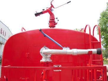2)與同類灑水車車型相比,在具有灑水車功能之外,還配置消防車的消防泵和消防炮,射程是灑水炮的2倍以上,可以撲救一般火災(zāi),可以野外工作;注水速度